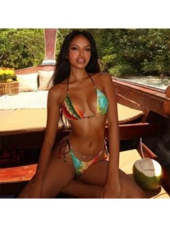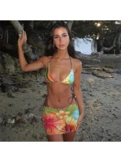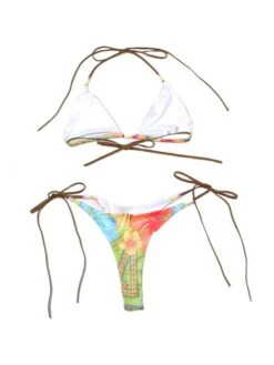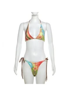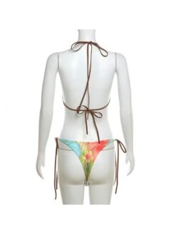 Colorblock,Contrast Color,Floral,Flower,Halter,Lace Up,Tie-wrap,Color Matching,Print